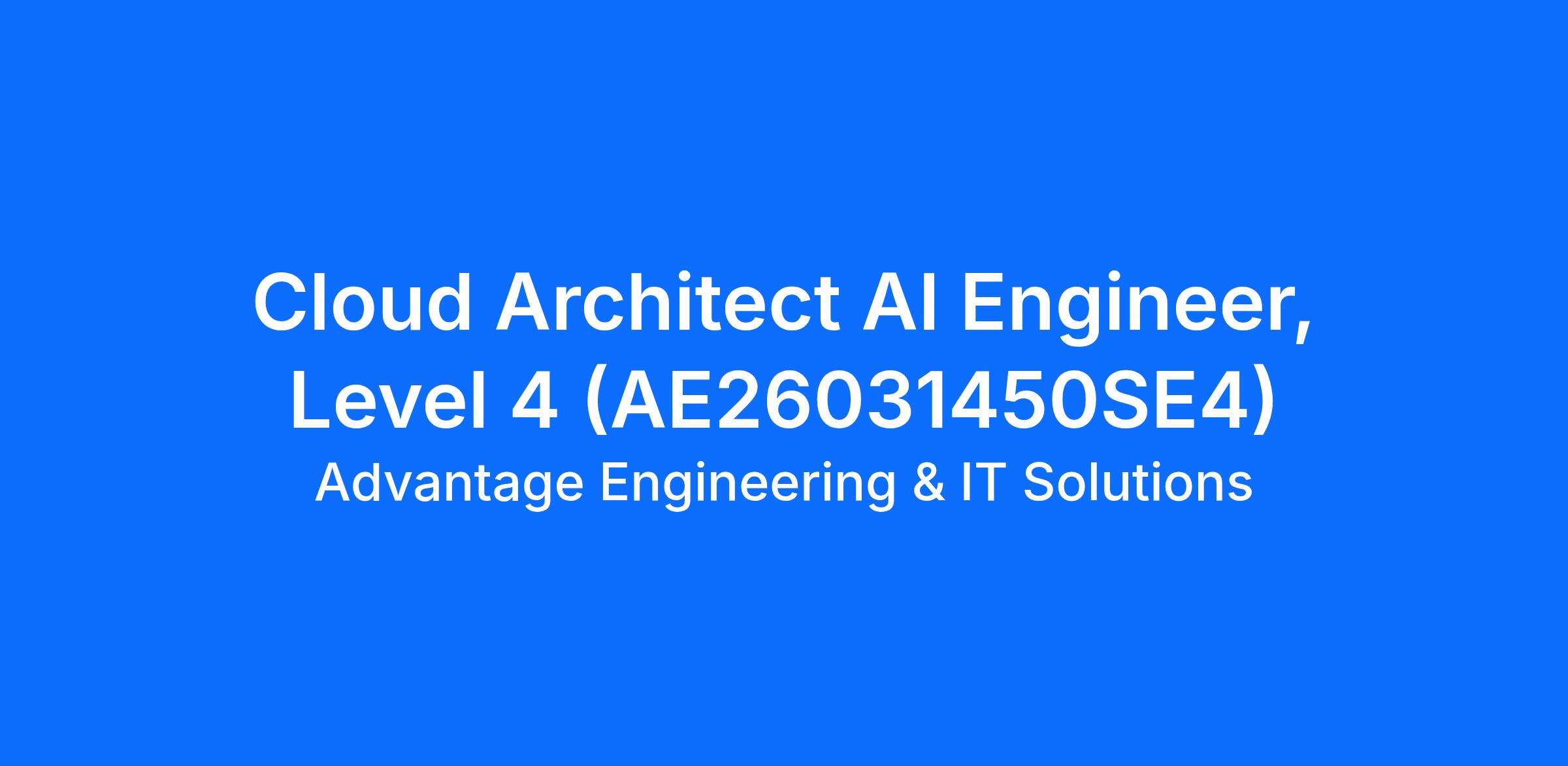 AEITS, Inc., a GTSC company, is growing its team! Seeking a Cloud Architect Artificial Intelligence (AI) Engineer, Level IV, to support our customer in the Annapolis Junction, MD area.