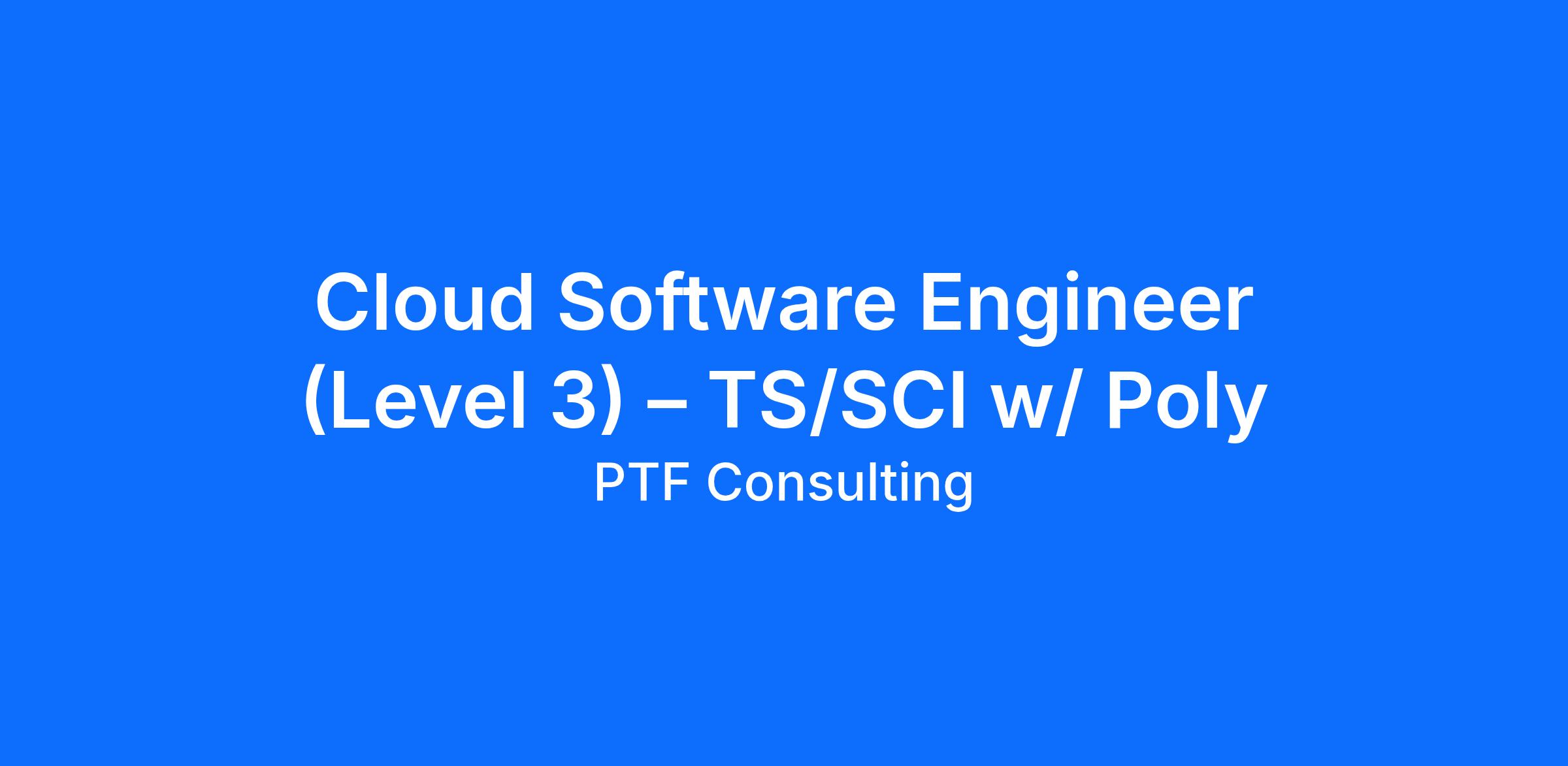 Cloud Software Engineer (Level 3) – TS/SCI w/ Poly