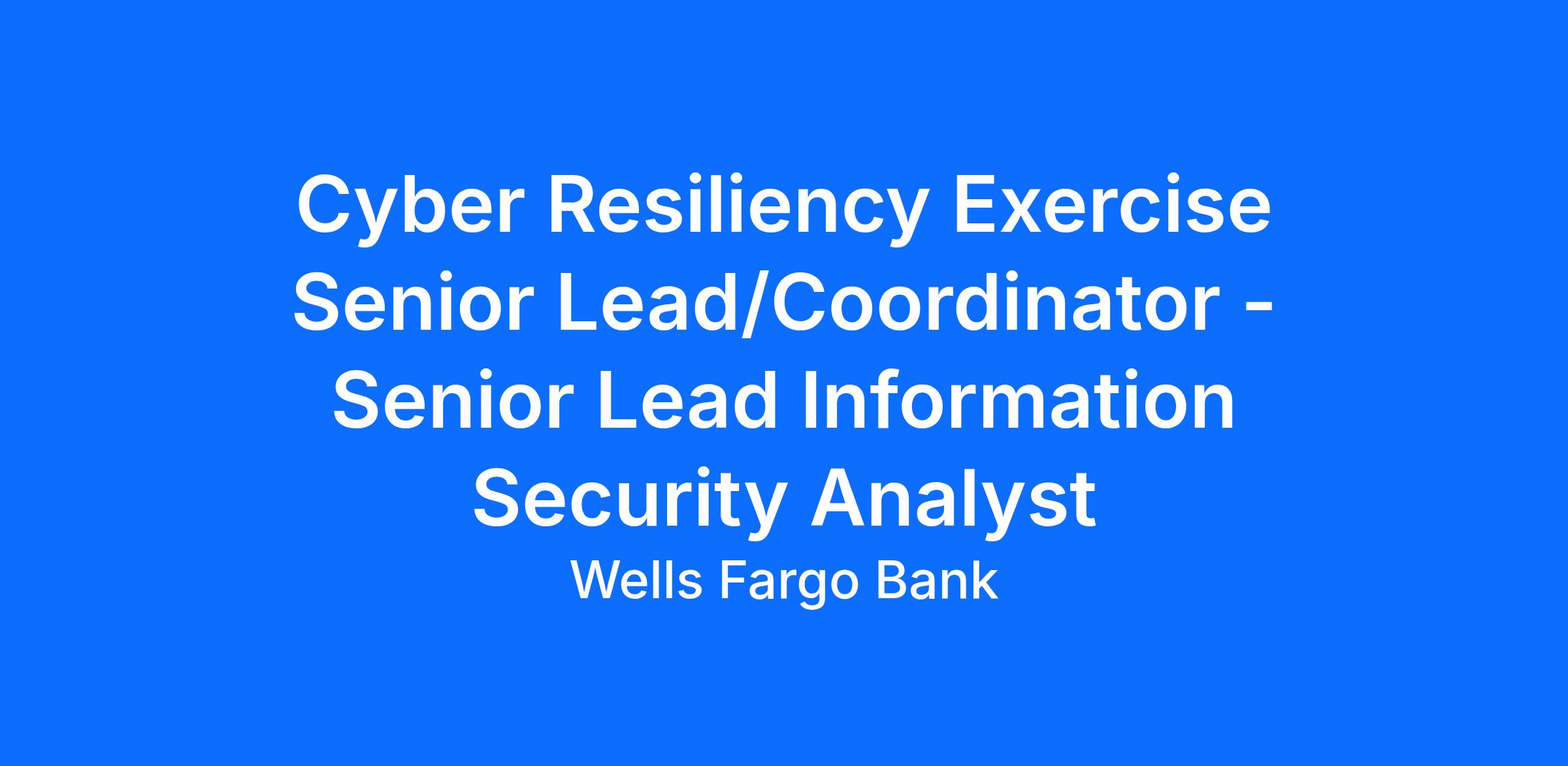 Cyber Resiliency Exercise Senior Lead/Coordinator: