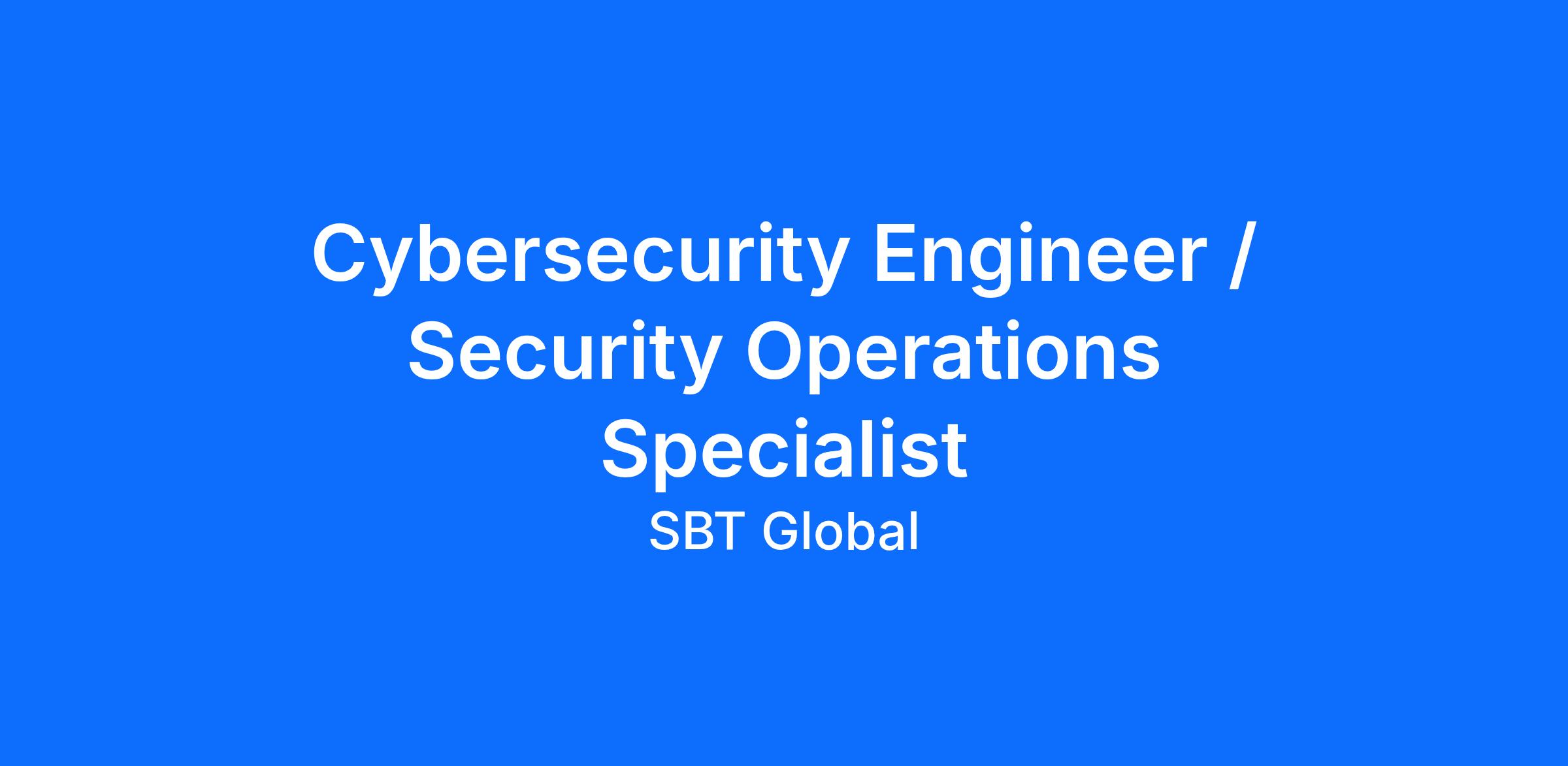Job Title: Cybersecurity Engineer / Security Operations Specialist