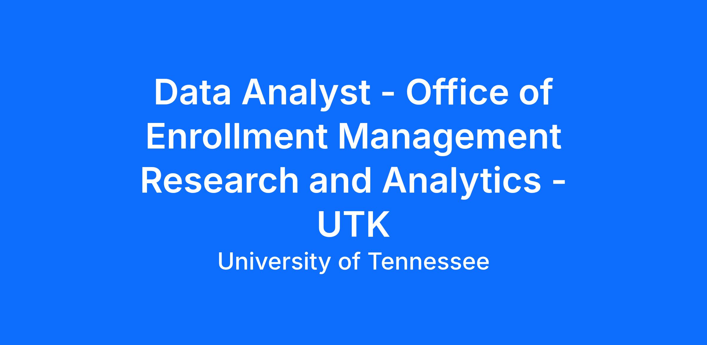 The Office of Enrollment Management Research and Analytics at the University of Tennessee, Knoxville (UTK) invites applications and nominations for our Data Analyst position. We are seeking candidates who can contribute in meaningful ways to enhance the accessibility of higher education, fostering a diverse and inclusive academic environment, and improving the recruitment and graduation of our students. The University of Tennessee, Knoxville, has been ranked by Forbes as one of America’s best large employers, as recognized on the 2025 list.