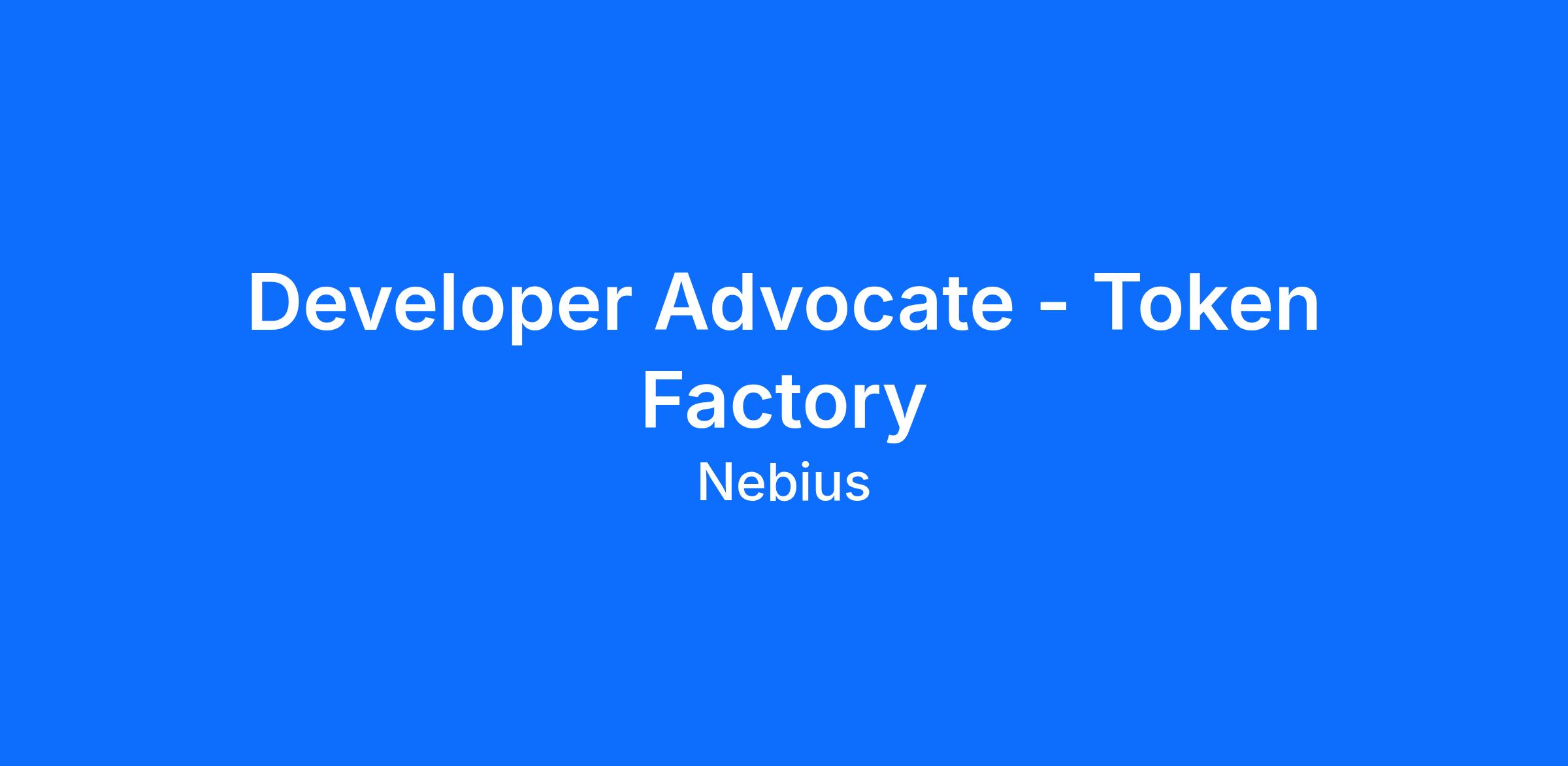 We’re looking for a scrappy, resourceful Developer Advocate to help grow Token Factory, Nebius’ high-performance inference platform built for teams running real production AI workloads at scale. This is a hands-on role for someone who loves working directly with builders and helping them ship faster, cheaper, and more reliable AI products. You’ll sit right next to product and engineering, shape how developers discover and trust the platform, and spend most of your time building demos, running workshops, writing practical guides, and talking with developers who are deeply opinionated about inference performance. If you like moving fast, wearing multiple hats, and turning deep technical work into something developers actually want to use, this role is for you.