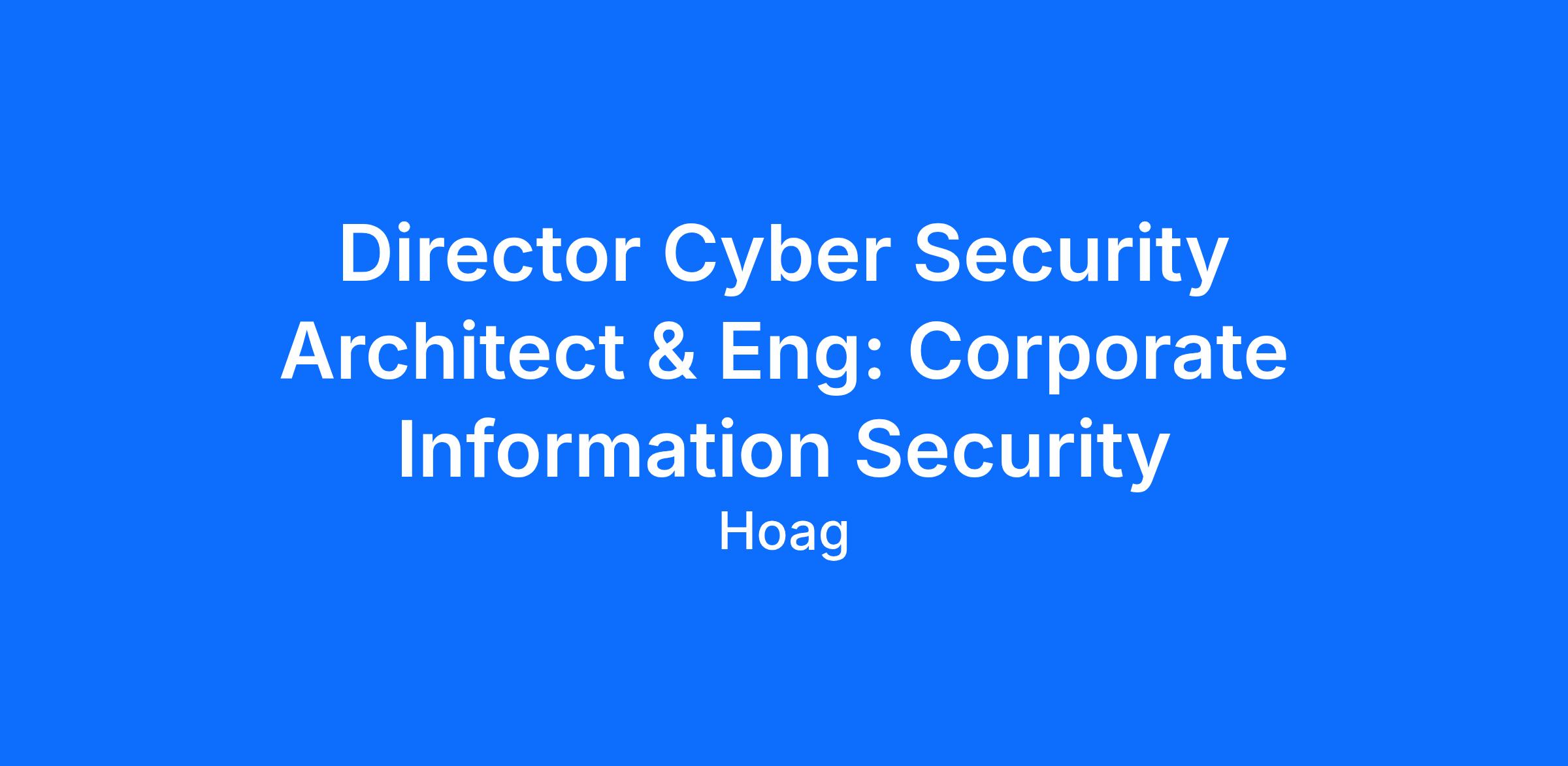 The Director of Cyber Security Architecture & Engineering leads the security, architecture, operations and engineering functions at Hoag. Reporting to the CISO, this role defines and develops, implements the enterprise security tactical plan across network, identity, and infrastructure to reduce risk and prevent breaches. The Director manages a team of engineers and architects, collaborates with IT and business leaders, and ensures that security controls align with business objectives and regulatory requirements. Responsibilities include input into strategic cybersecurity vision, overseeing budget and vendor relations, and developing secure-by-design solutions that support innovation.