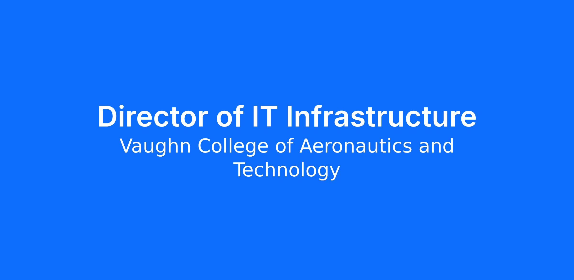 The Director of IT Infrastructure provides strategic, operational, and people leadership for IT services supporting the academic and administrative functions of the College. This role advances Vaughn College’s mission by ensuring reliable, secure, and innovative technology that elevates teaching, learning, institutional operations, and the student experience. Reporting to the Vice President of Finance and Business Services (CFO),the Director of IT Infrastructure serves as a trusted partner to academic leadership, administrative departments, faculty, and students, and oversees IT infrastructure, enterprise systems, academic technology, cybersecurity, vendor relationships, and the internal IT team.