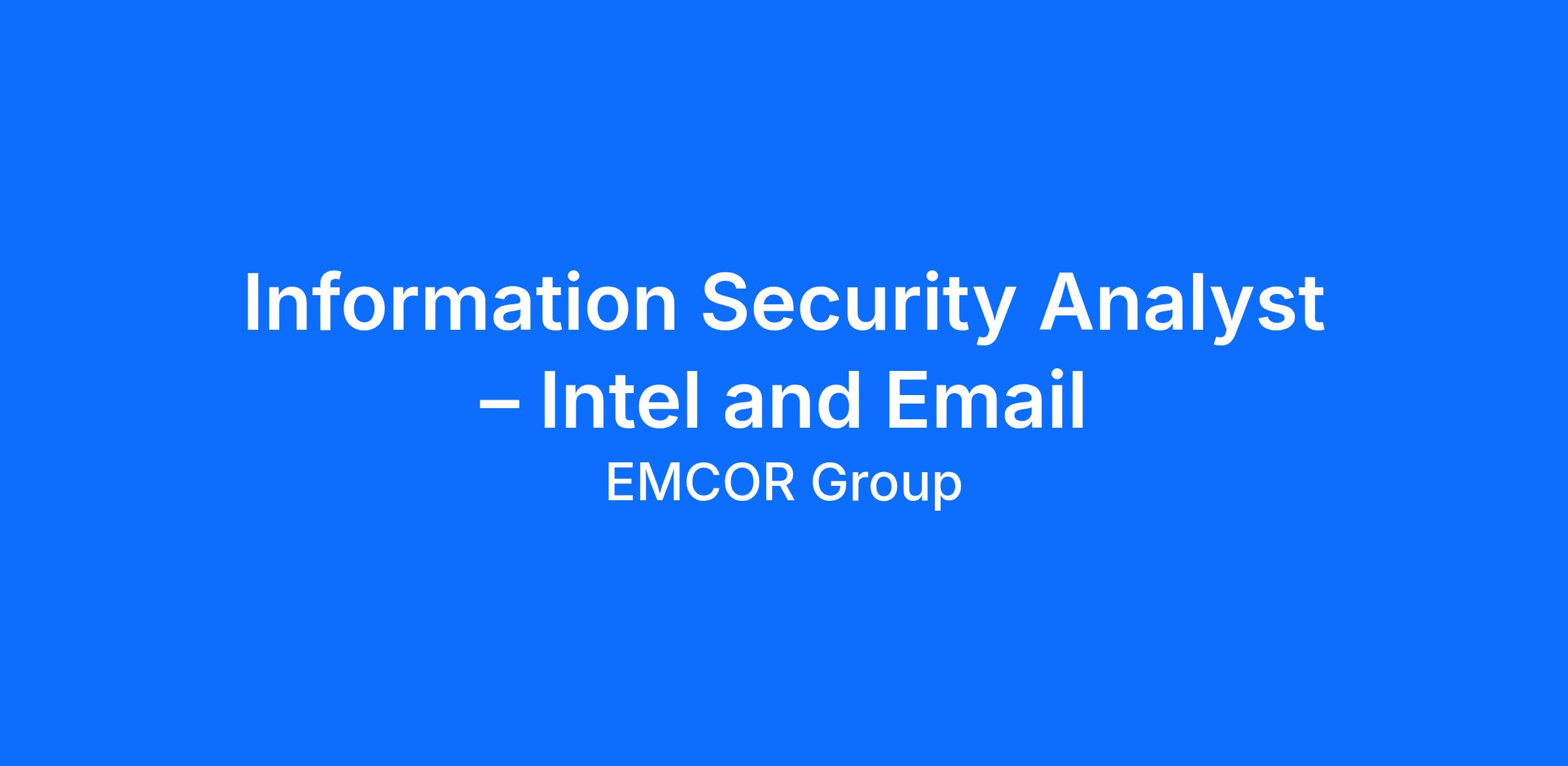 EMCOR Group, Inc. seeks an Information Security Analyst – Intel and Email who would be responsible for supporting the maintenance of EMCOR’s Security Program, protecting EMCOR’s information assets and technologies. This includes enhancing the information security management framework, supporting the vendor risk management process, and monitoring external threats. The Information Security Analyst – Intel and Email will focus on processing cyber security intelligence and will assist the Email Security Architect.