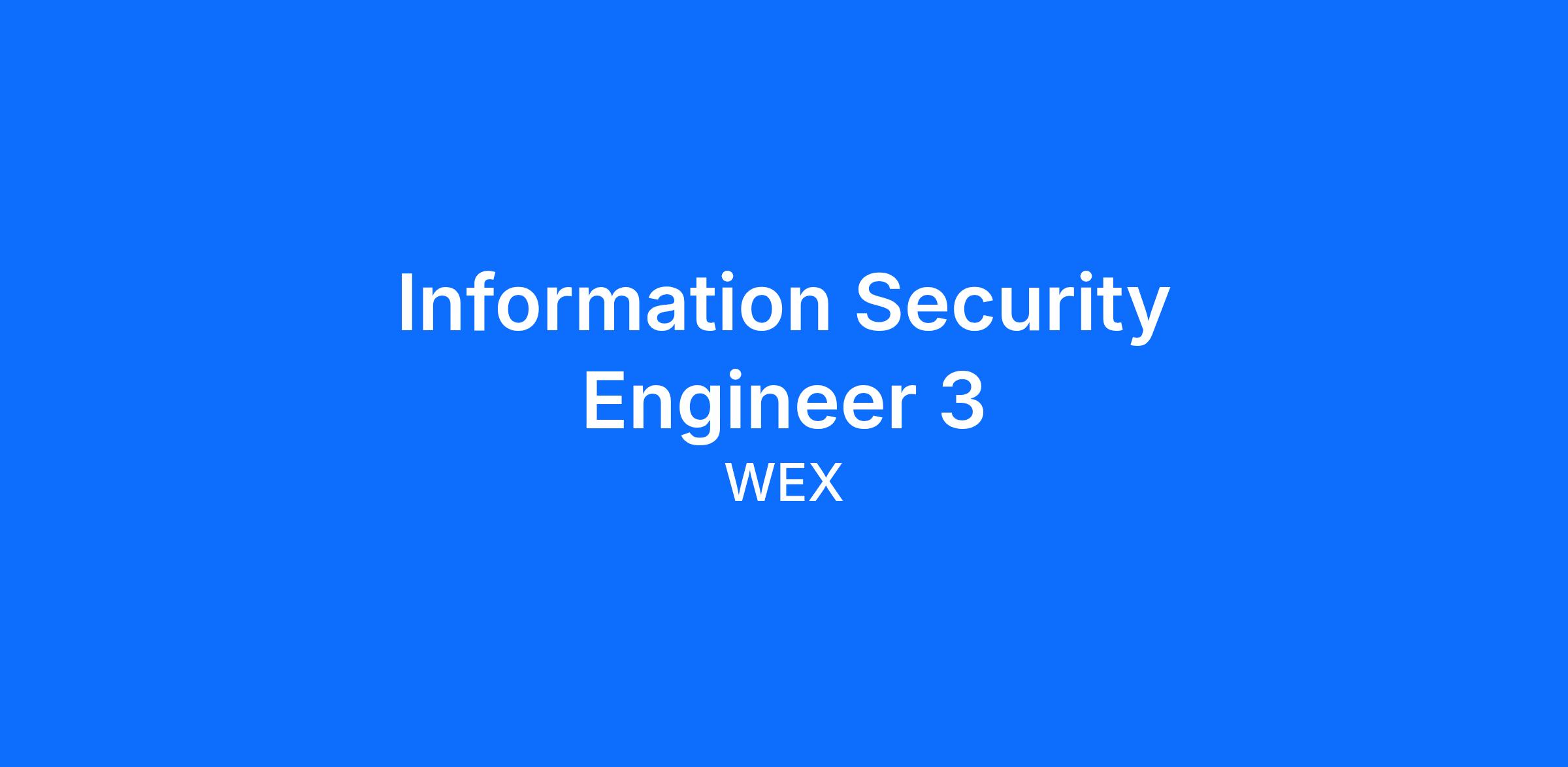 We’re the Global Information Security Team at WEX, responsible for implementing and operating security technologies and processes throughout WEX. We partner closely with internal teams and customers to assure WEX operates in a secure and compliant manner. Our team holds itself to a high-standard and we collaborate closely with one another to ensure