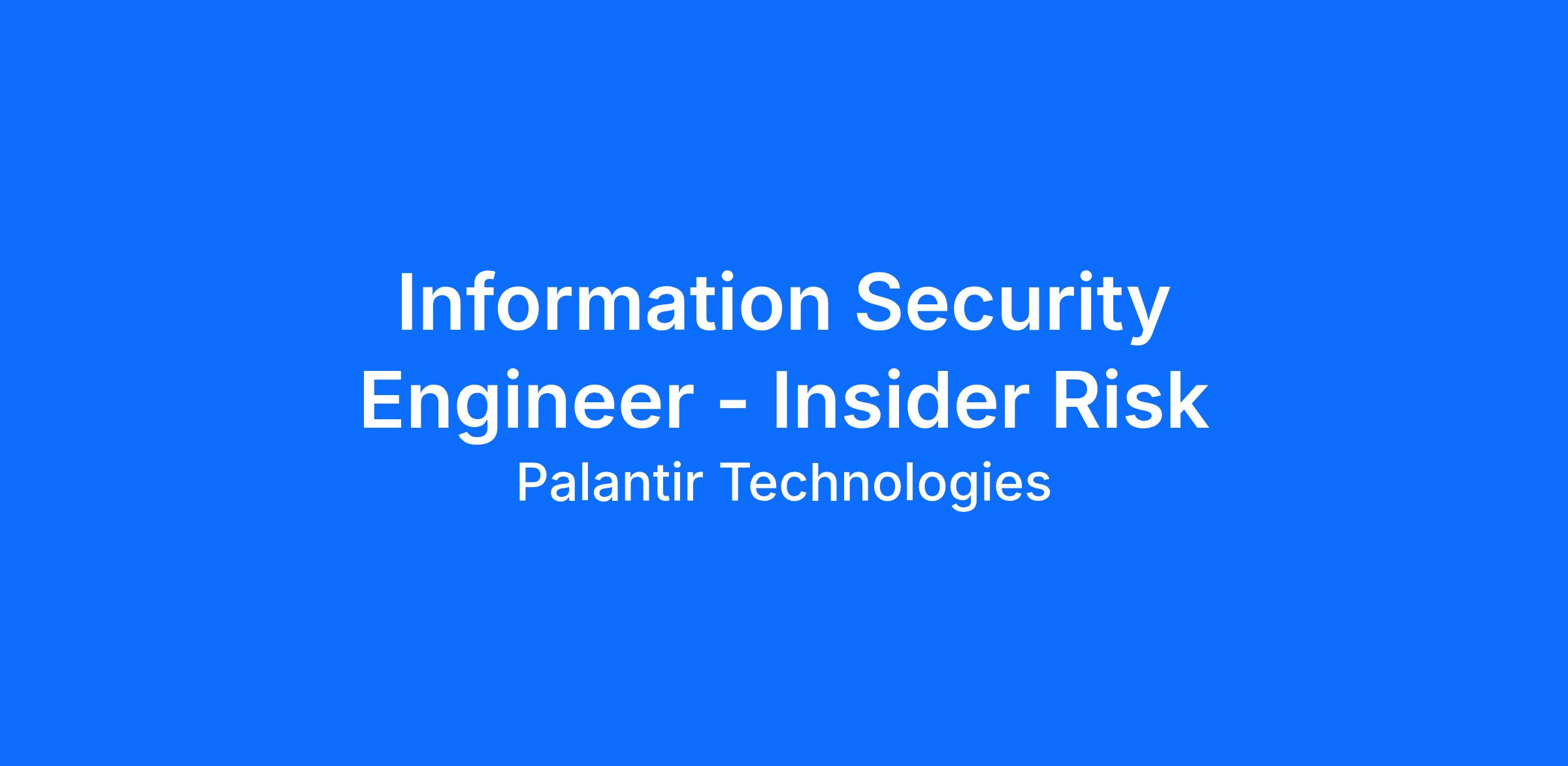 As an Insider Threat Detection Engineer, you are responsible for protecting Palantir's people, data, and most sensitive assets across the globe. Your technical expertise is matched by your integrity and genuine passion for security. You work well on a team, are highly motivated, and thrive on solving problems and taking on new challenges.