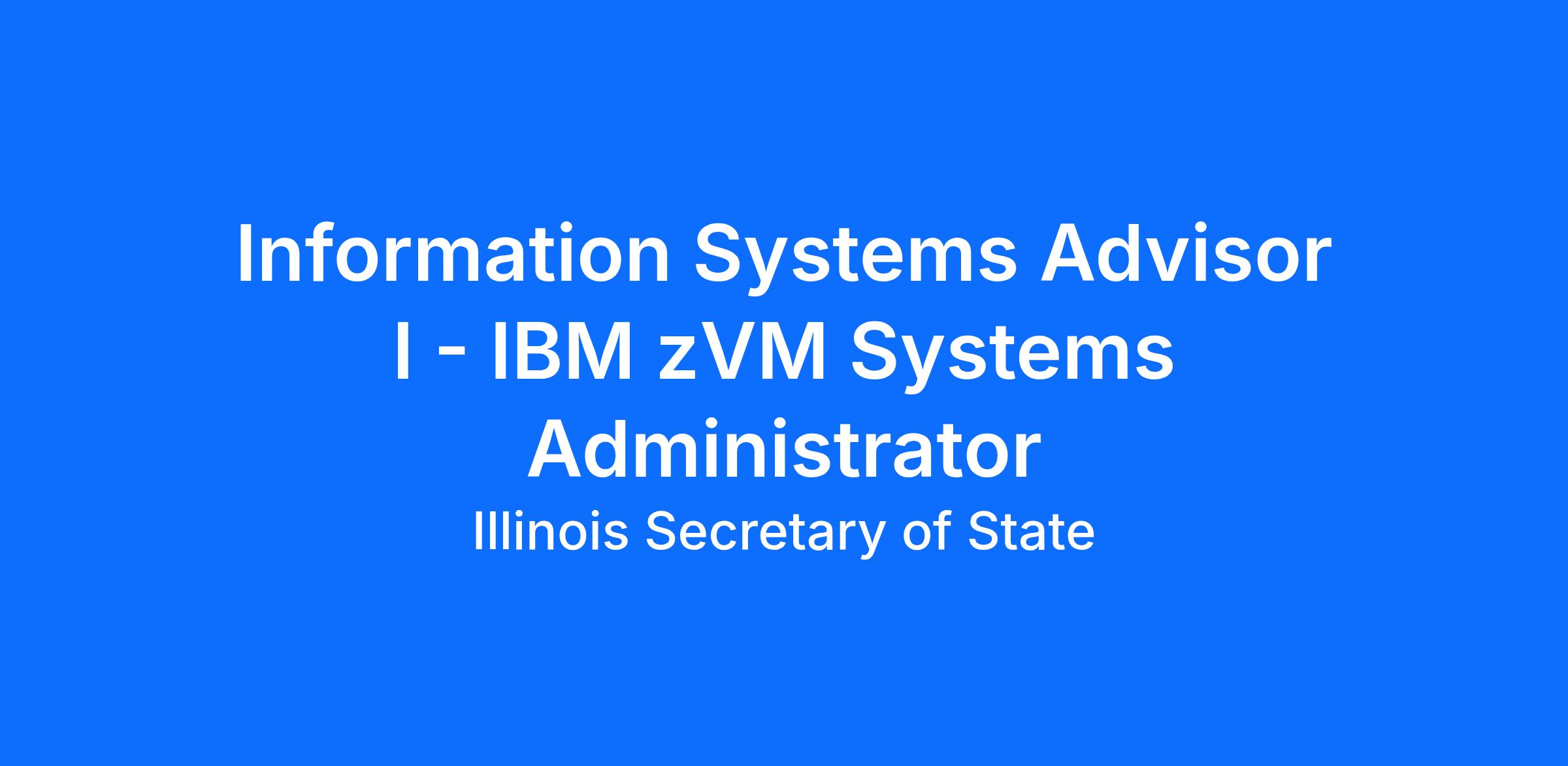 Job Title: Information Systems Advisor I – IBM zVM Systems Administrator Division: Technology Office – Infrastructure Union: IFT Location: 501 S 2nd St., Springfield, IL – Sangamon County Salary: Range from $6,759 to $12,573 monthly. Commensurate with experience Benefits:https://cms.illinois.gov/benefits/stateemployee.html Attention: Applicants must be authorized to work in the United States; the Office of the Secretary of State will not complete certification and/or sponsorship requests.