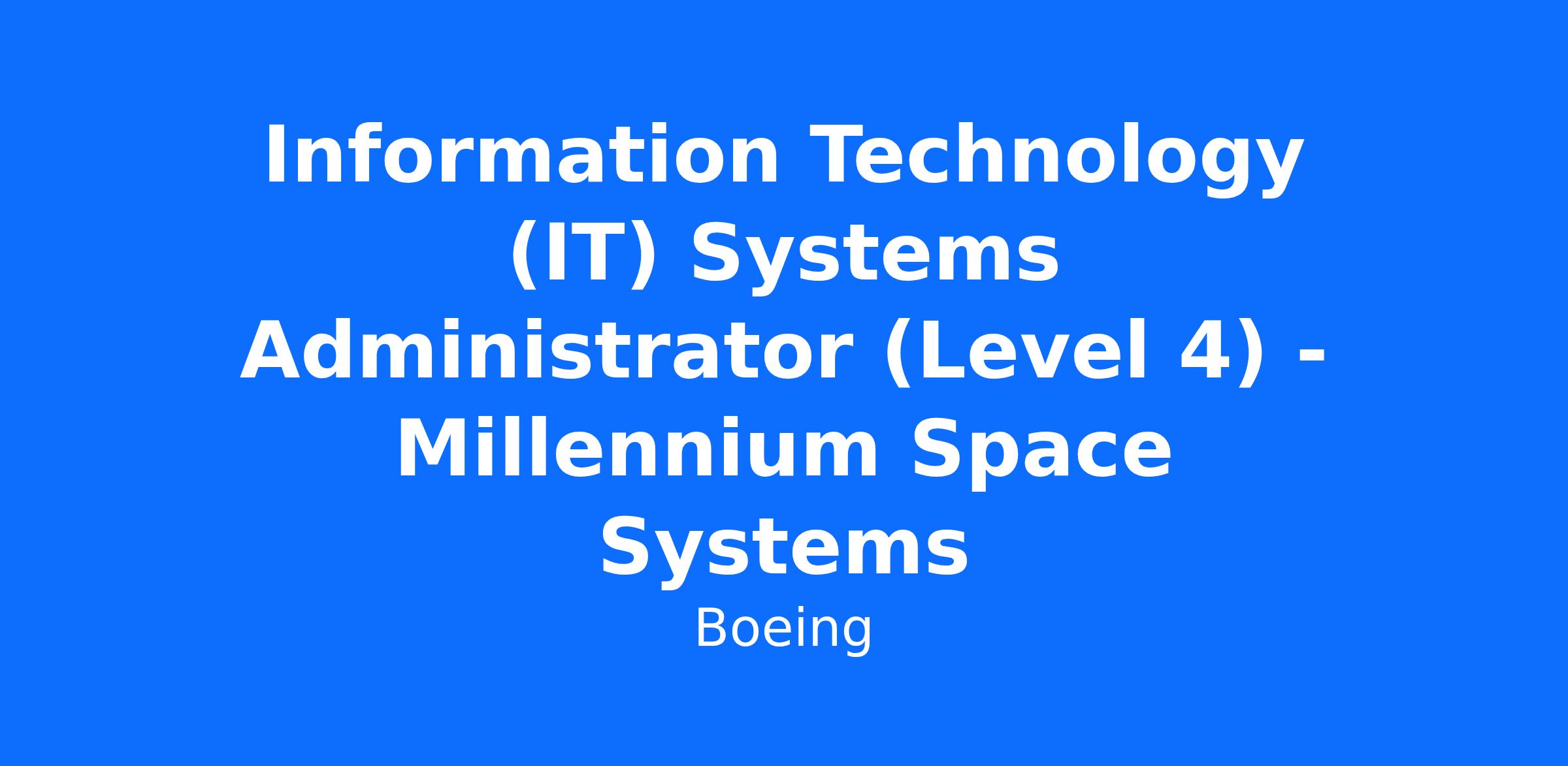 Millennium Space Systems (MSS) has an exciting opportunity for an Information Technology (IT) Systems Administrator (Level 4) to join the MSS team in El Segundo, CA!