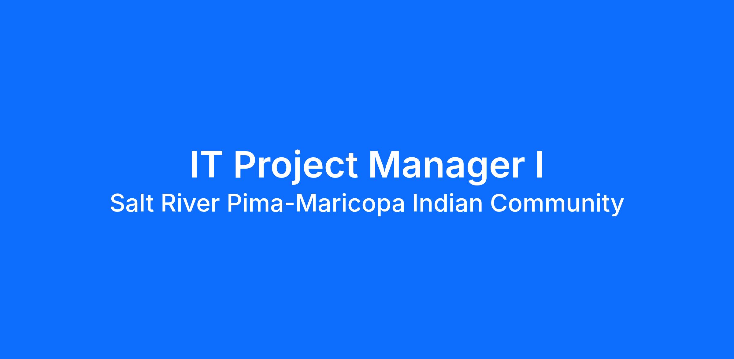 Definition: Under the general supervision of the Salt River Pima – Maricopa Indian Community (SRPMIC) Information Technology Department IT Assistant Director (Application Systems), the IT Project Manager I is responsible for the successful completion of assigned IT projects. Works with the IT department staff and clients to complete assigned implementations of new IT systems and/or system upgrade projects. Guides IT resources towards ultimate client business solutions and ensures proper project planning, resources scheduling, project budget management, project evaluation and client satisfaction. This job class is treated as FLSA exempt.