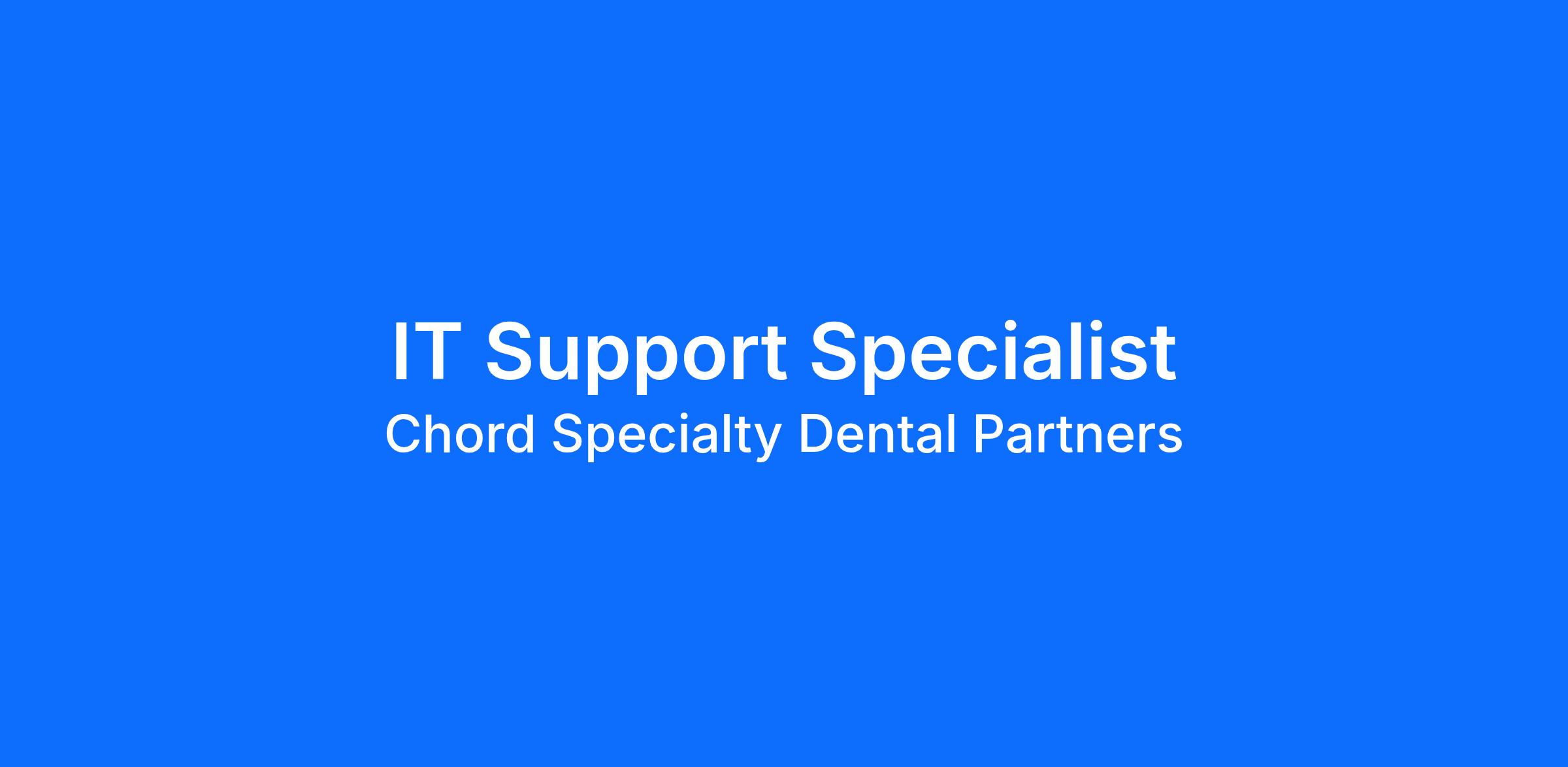 Chord Specialty Dental Partners, a leading provider of pediatric and orthodontic dental care, has a full-time career opportunity available for an IT Support Specialist!