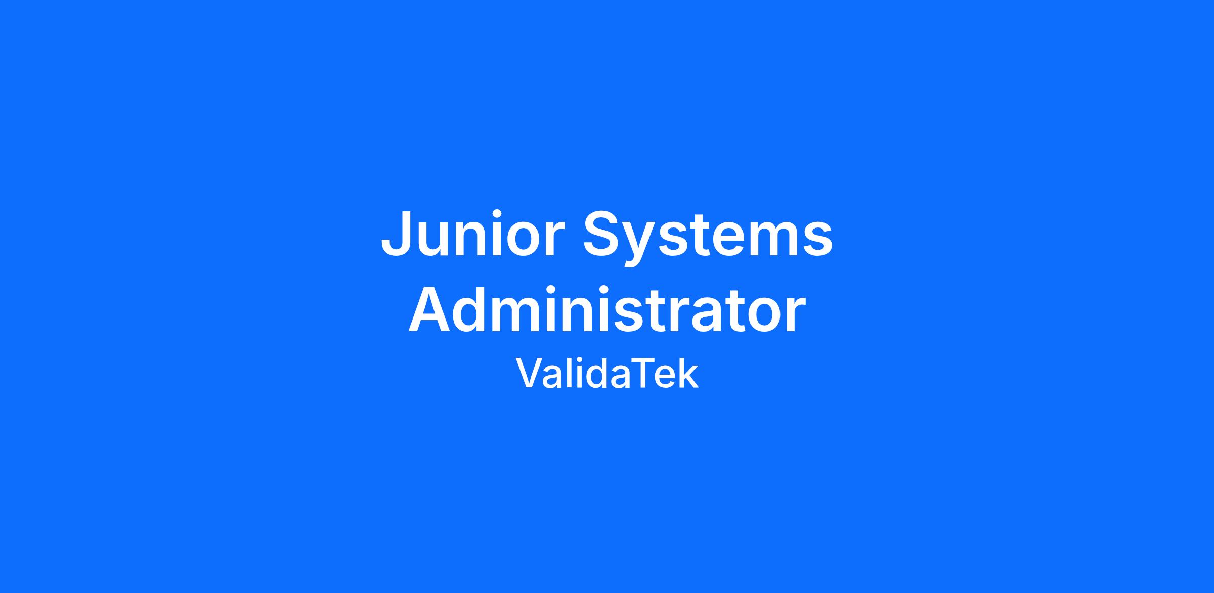 ValidaTek is seeking a motivated and detail-oriented Junior Systems Administrator to support the Cybersecurity Systems Support (CSS) contract with the Defense Information Systems Agency (DISA). This entry-level position provides hands-on support for enterprise IT systems in a secure Department of Defense environment. The ideal candidate will have foundational IT knowledge, a desire to learn, and a strong sense of responsibility for maintaining secure and efficient system operations. This is a 100% on-site position located at Scott AFB.