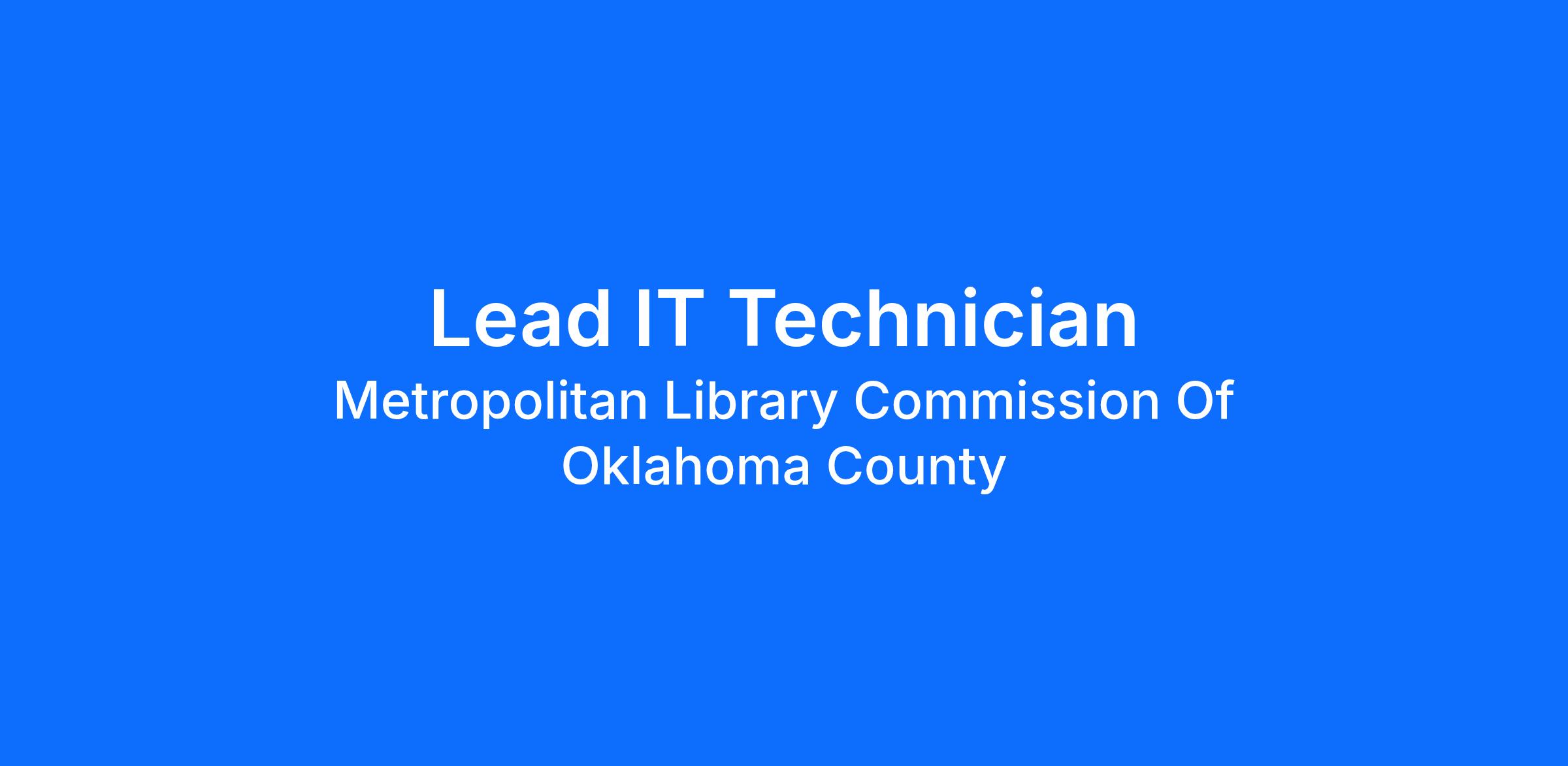 This position will be assigned to Information Technology department, which is located at the Ronald J. Norick Downtown Library at 300 Park Avenue in Oklahoma City, OK.