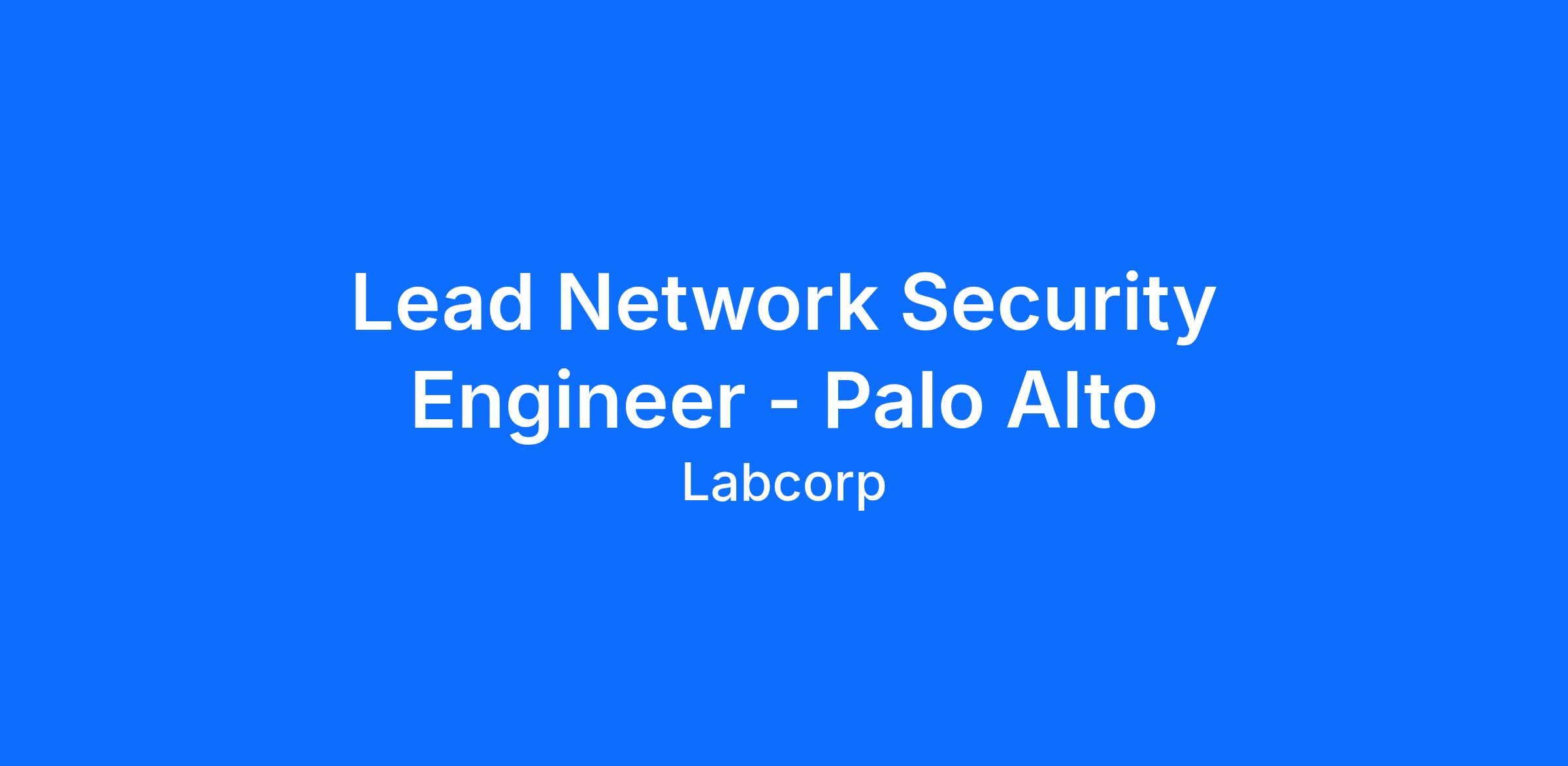 The Lead Network Security Engineer – Palo Alto is responsible for the design, implementation, and operational integrity of Labcorp’s enterprise network security environments. This role serves as a senior technical authority for firewall platforms, supports regulatory audits, and leads complex security initiatives across the enterprise. The position partners closely with infrastructure, cloud, and application teams to ensure secure, scalable, and compliant network security operations while supporting modernization and automation efforts.