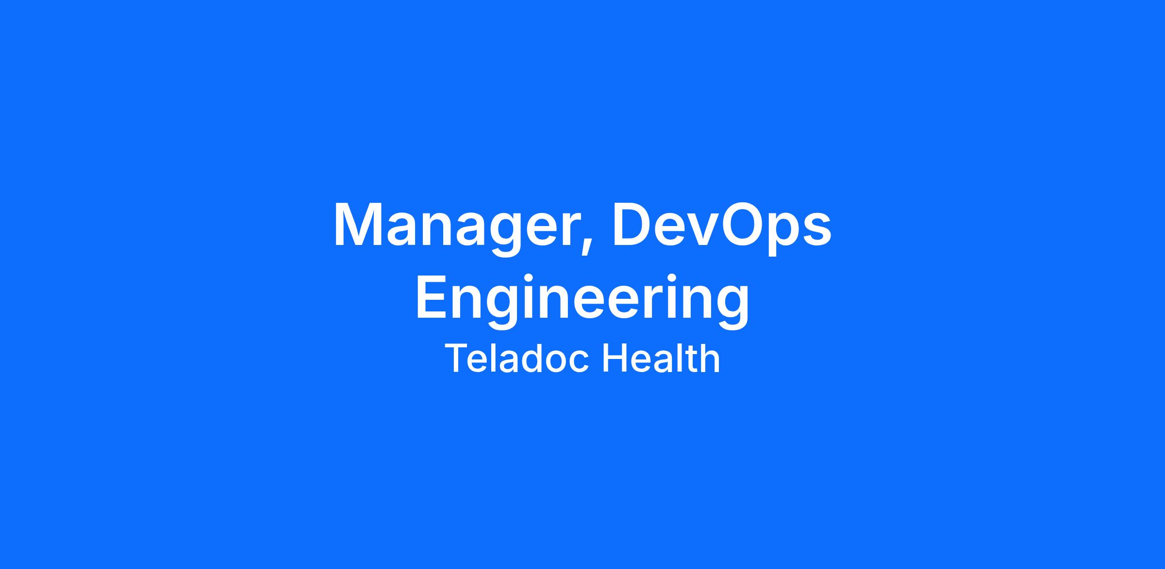 Applicants who are interested in this position should apply by emailing resume to recruiting@teladoc.com. Reference Job Code: 9647745_2026 or via https://www.teladochealth.com/careers/ and search for Manager, DevOps Engineering.