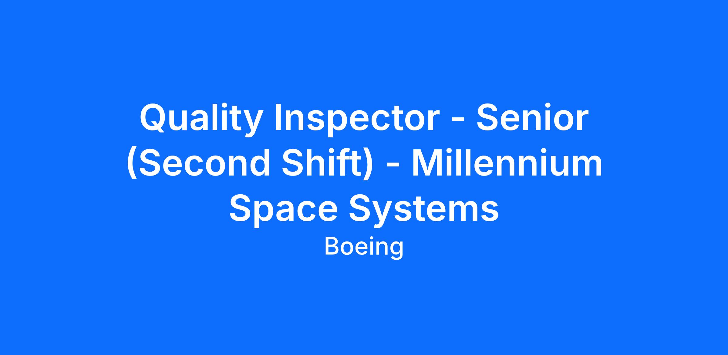 Quality Inspector - Senior (Second Shift) - Millennium Space Systems