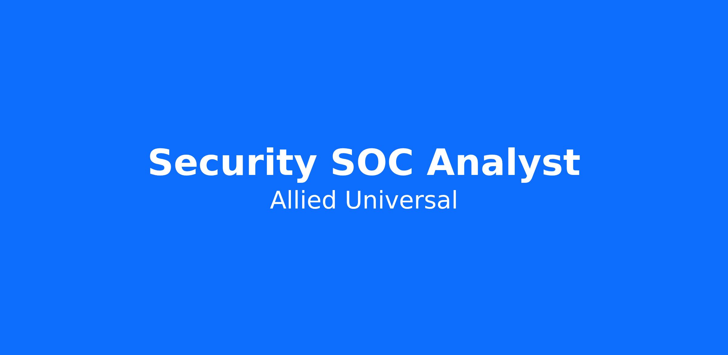 Allied Universal Security Services is seeking to fill the position of a Security SOC Analyst in Norwood, MA.
