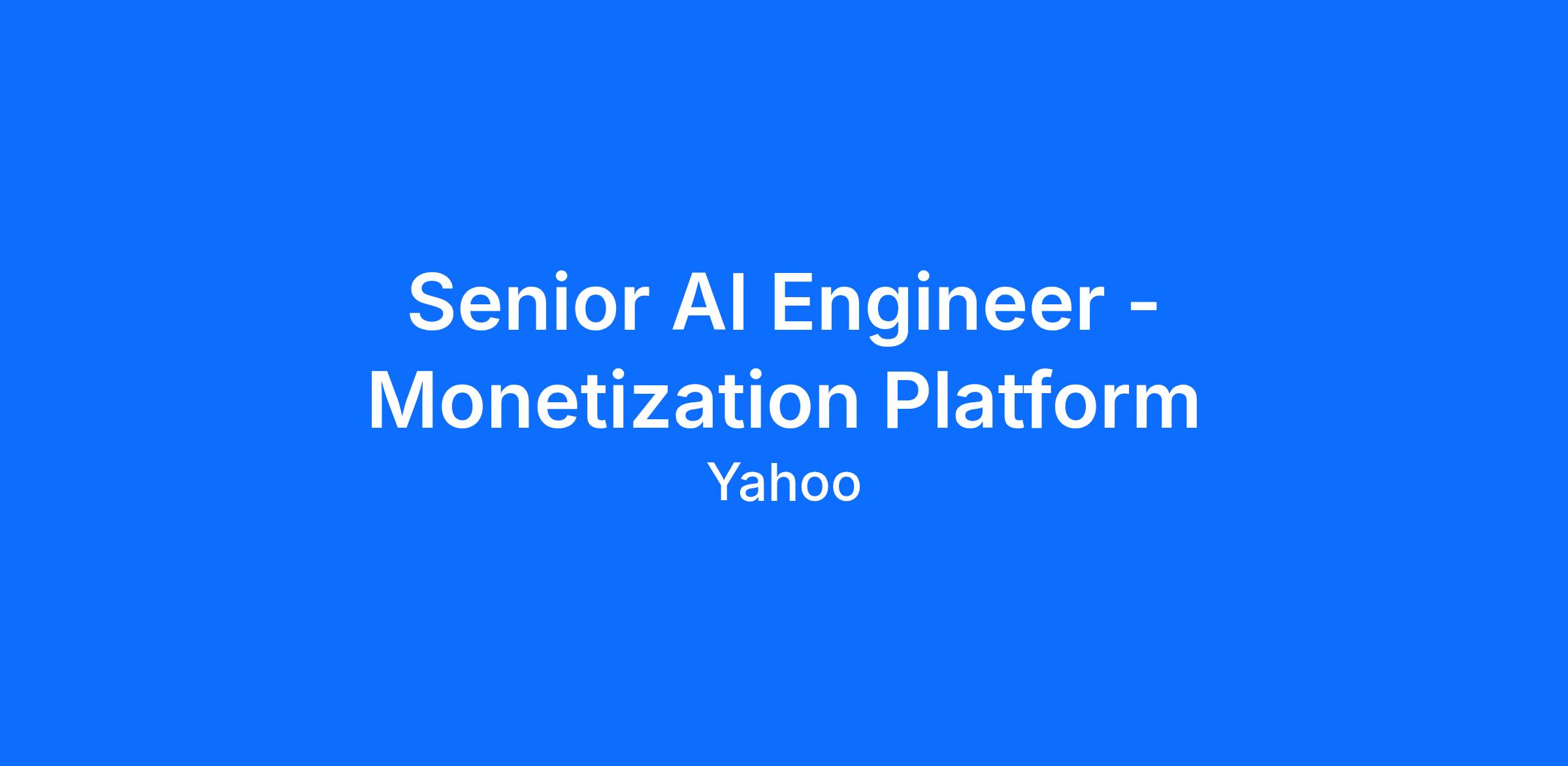 At Yahoo, we offer flexible hybrid work options that our employees love! While most roles don’t require regular office attendance, you may occasionally be asked to attend in-person events or team sessions. You’ll always get notice to make arrangements. Your recruiter will let you know if a specific job requires regular attendance at a Yahoo office or facility. If you have any questions about how this applies to the role, just ask the recruiter!