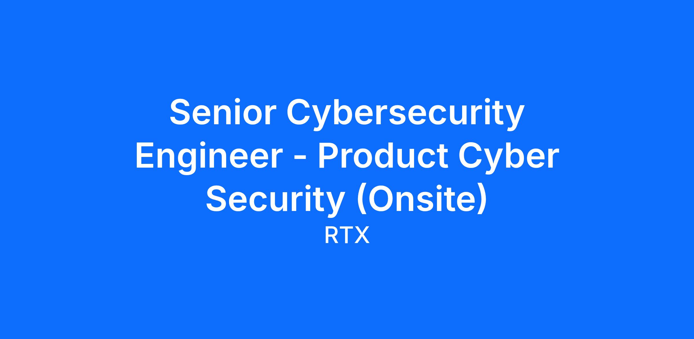 Active and existing security clearance required on day 1Senior Cybersecurity Engineer - Product Cyber Security (Onsite)