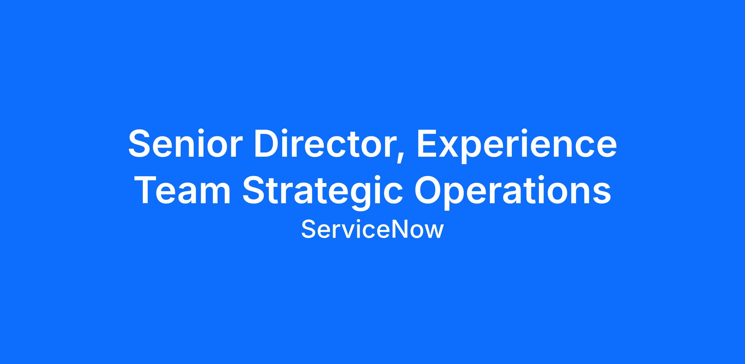 ServiceNow is reimagining how the world works through AI-powered experiences—and we need a strategic leader to help drive that transformation. We're seeking a Senior Director of Experience Team Strategic Operations to be the right hand to our Chief Experience Officer, leading strategy and operations for a 1,000+ person organization responsible for Product Design, UX Research, and Content that millions use daily.