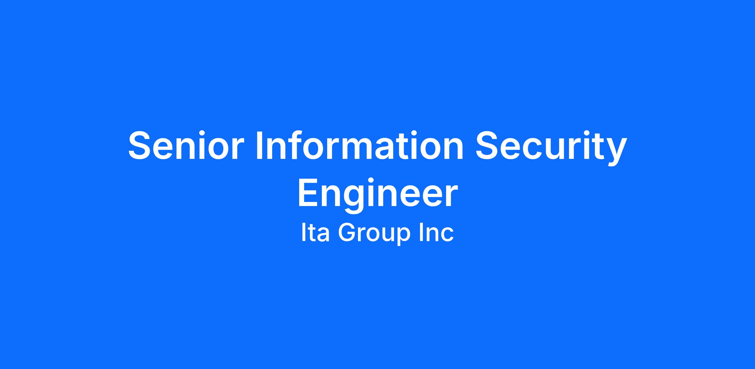 The Senior Information Security Engineer has responsibility for the security of ITA Group’s information systems, data assets, infrastructure, and AI tools usage and governance. This role translates security policies and regulatory requirements into effective technical and operational controls, while providing senior-level technical leadership, mentorship, and governance oversight. The position balances hands-on engineering, compliance execution, and forward-looking AI security governance.