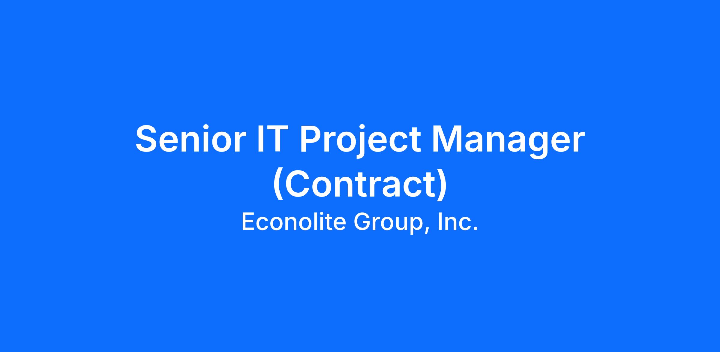 We are seeking a Senior IT Project Manager to lead the successful delivery of D365 ERP portfolio, complete the migration of legacy systems and environments, and drive key infrastructure initiatives that enable secure, reliable, and scalable technology environments. completing the migration of legacy systems and environments. This role will partner with technical teams and third-party integrators to deliver projects aligned with Econolite’s business objectives. It is accountable for managing project operations - including planning, execution, and coordination across multiple workstreams. The Senior Project Manager excels at staying organized and balancing multiple priorities while driving results through decisive leadership and clear, concise communication of objectives, expectations, and progress.