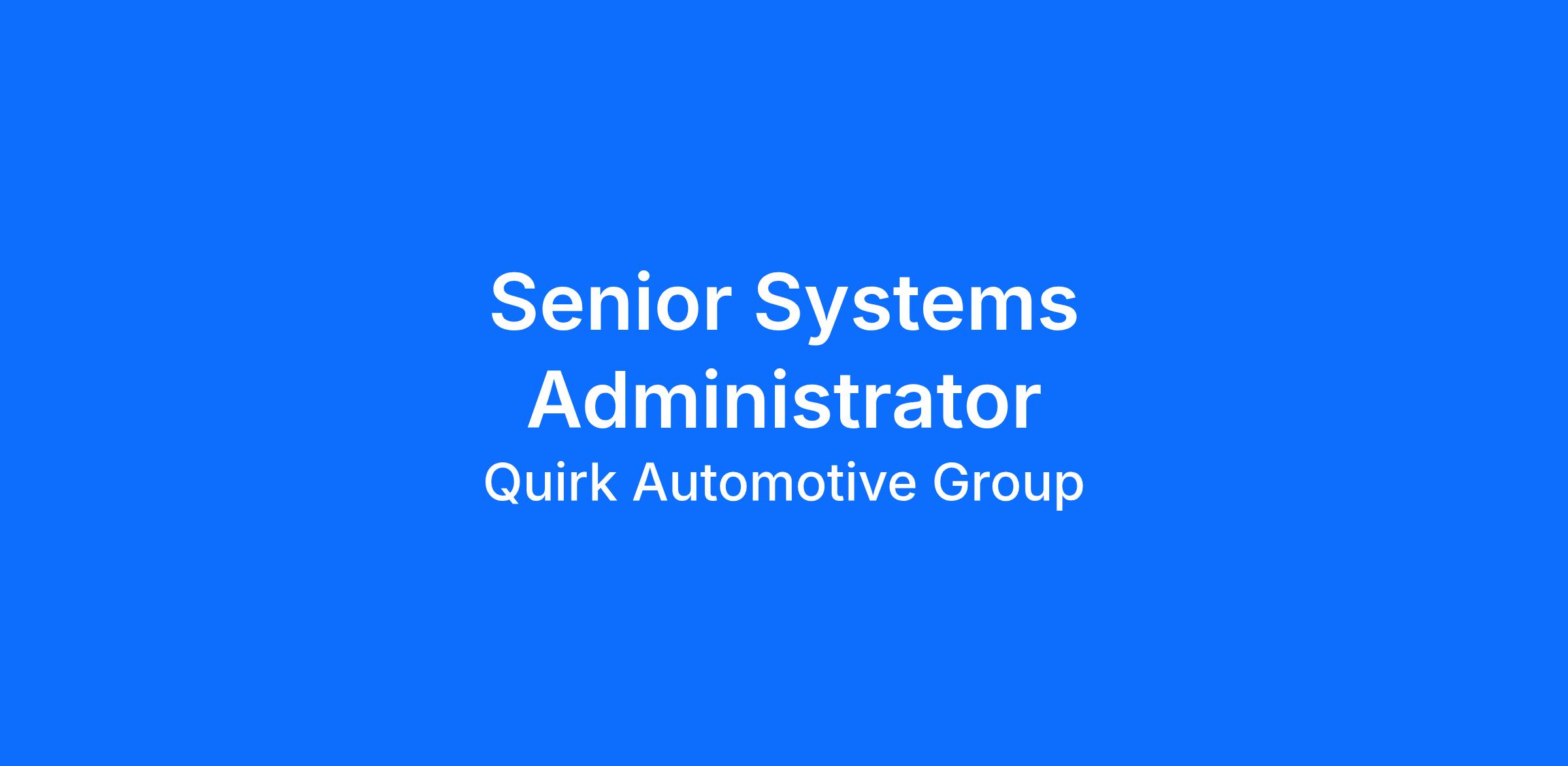 Quirk Auto Dealerships is seeking an experienced and highly skilled Senior Systems Administrator. In this role you will be responsible for the day-to-day operation, maintenance, evolution and security of our organization’s infrastructure. The ideal candidate brings deep technical expertise, strong problem-solving abilities, and a proactive approach to system optimization and reliability.