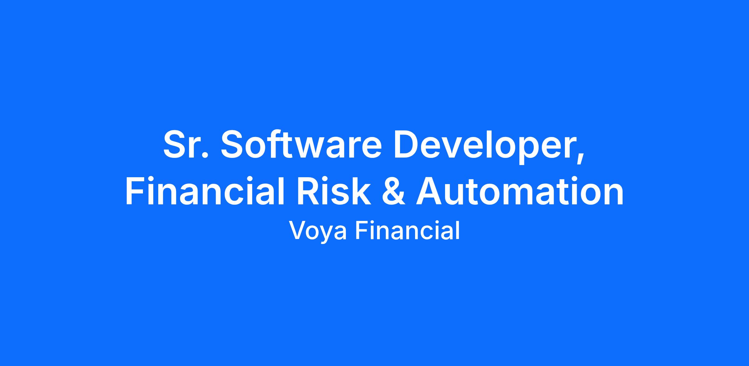 Voya Financial is an equal-opportunity employer. Voya Financial provides equal opportunity to qualified individuals regardless of race, color, sex, national origin, citizenship status, religion, age, disability, veteran status, creed, marital status, sexual orientation, gender identity, genetic information, or any other status protected by state or local law.