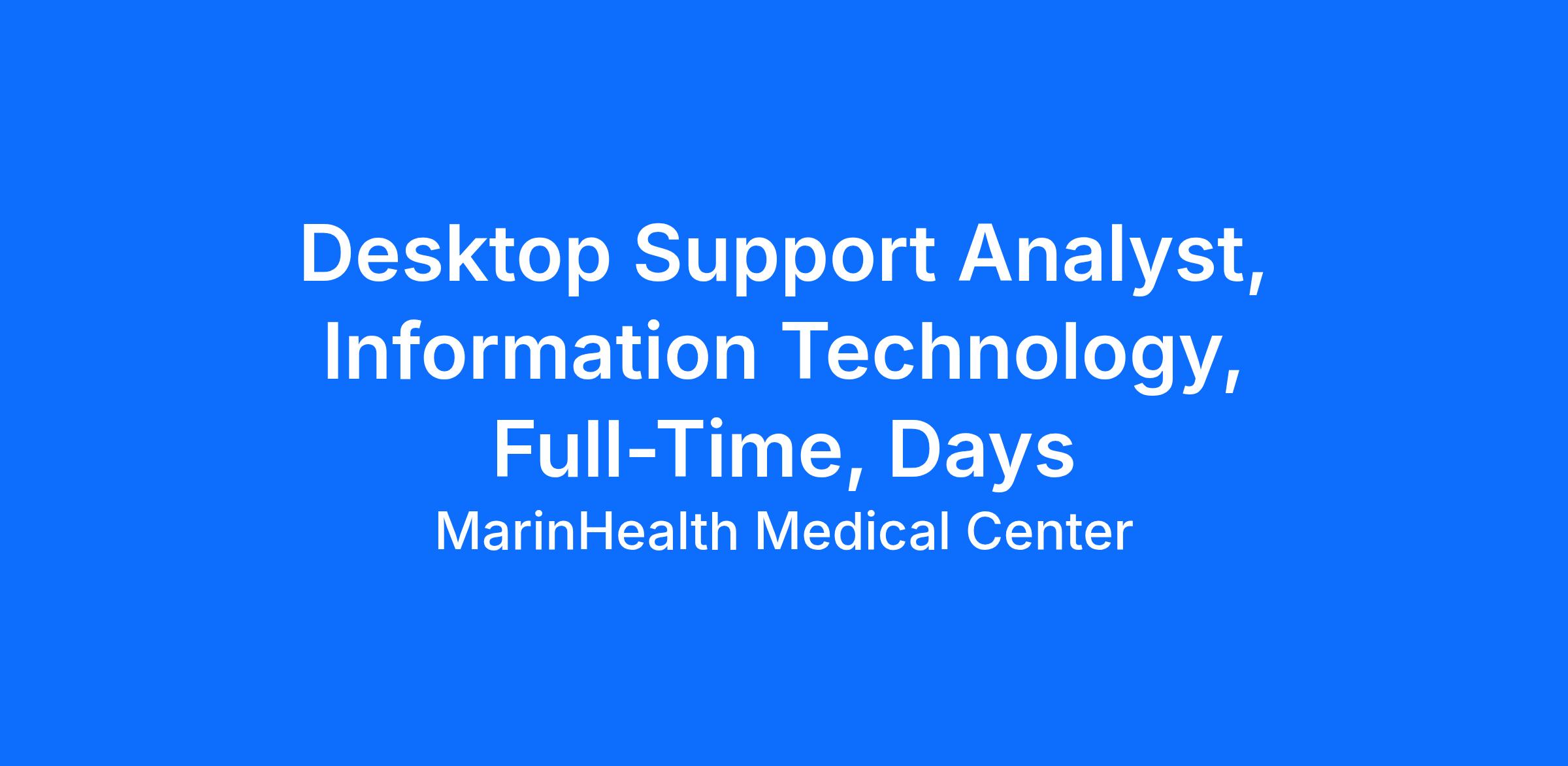 The Desktop Support Analyst position under the general direction of the Asst. Director, IT is responsible for managing day to day trouble tickets, work orders and managing all aspects of his/her assigned projects. The incumbent integrates user needs, collaborates with technical specialists, makes assessments, and implements as required. Scope of the role includes working with assigned work teams that may include technical staff, physicians, clinic staff, and other staff as assigned. The incumbent manages day to day operations work activity including projects as assigned.Job Requirements, Prerequisites and Essential Functions: