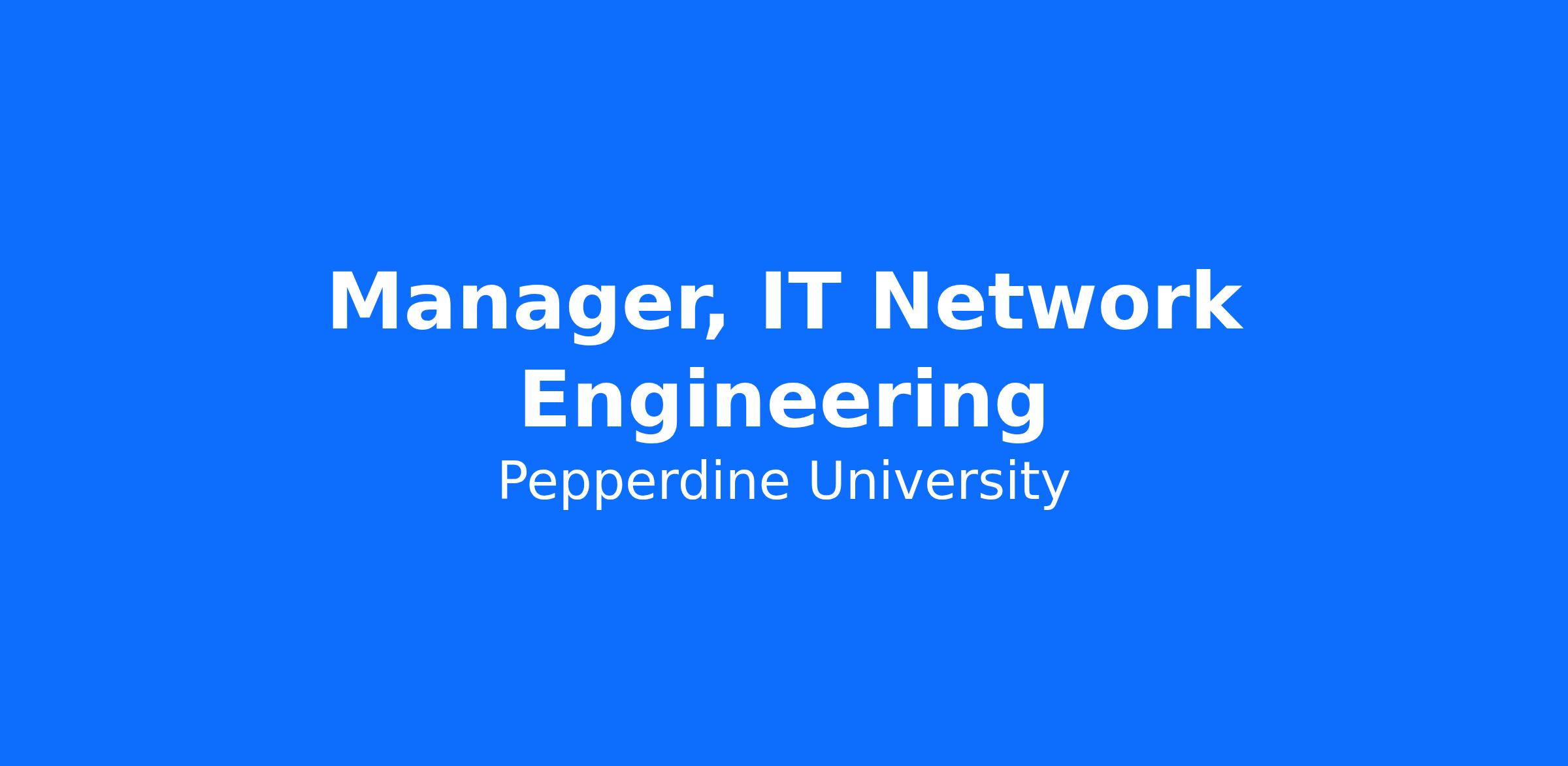 The Manager of Network Engineering leads and manages a team of network engineers responsible for planning, designing, implementing, and supporting Pepperdine University’s data network. As part of the Information Technology Systems & Networking group, this role ensures the reliability, security, and performance of the University’s network infrastructure. In alignment with Pepperdine’s mission, the Manager supports a technology environment that advances teaching, learning, and community engagement, enabling faculty, staff, and students to thrive in a purpose-driven academic setting.