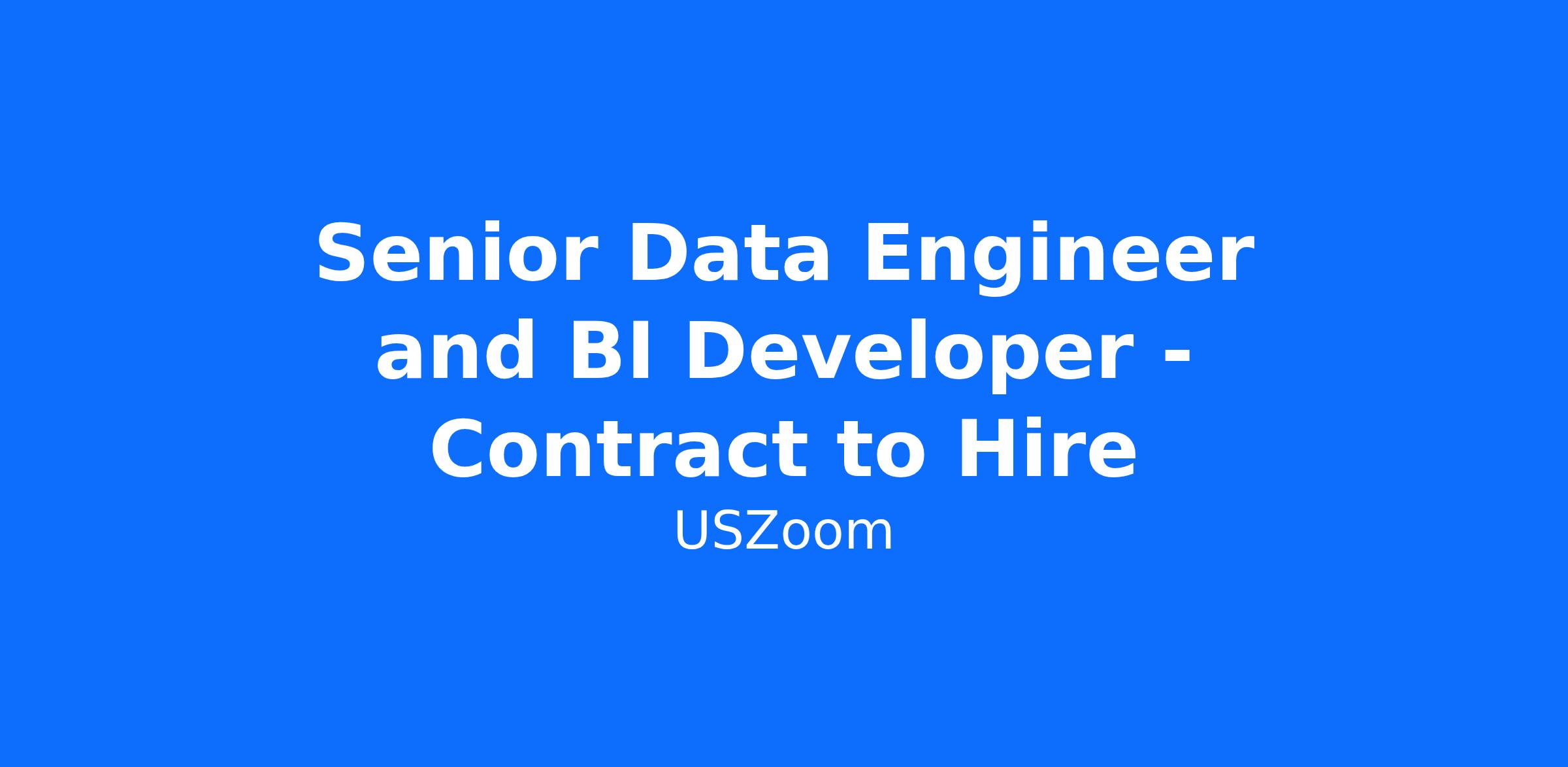 Senior Data Engineer and BI Developer - Contract to Hire